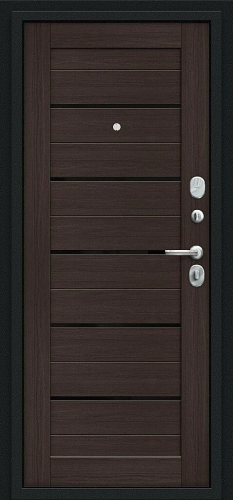Надежная входная Браво Техно Kale Букле черное/Wenge Veralinga премиум класса по цене 33 937 руб. Большая толщина стали защитит от проникновения в ваш дом, квартиру или коттедж. Используется очень качественная фурнитура: замки, цилиндры, ручки, защелки. Покрытие и отделка двери изготовлено под внимательным контролем производителя. Дверь имеет долгий срок службы и гарантию.