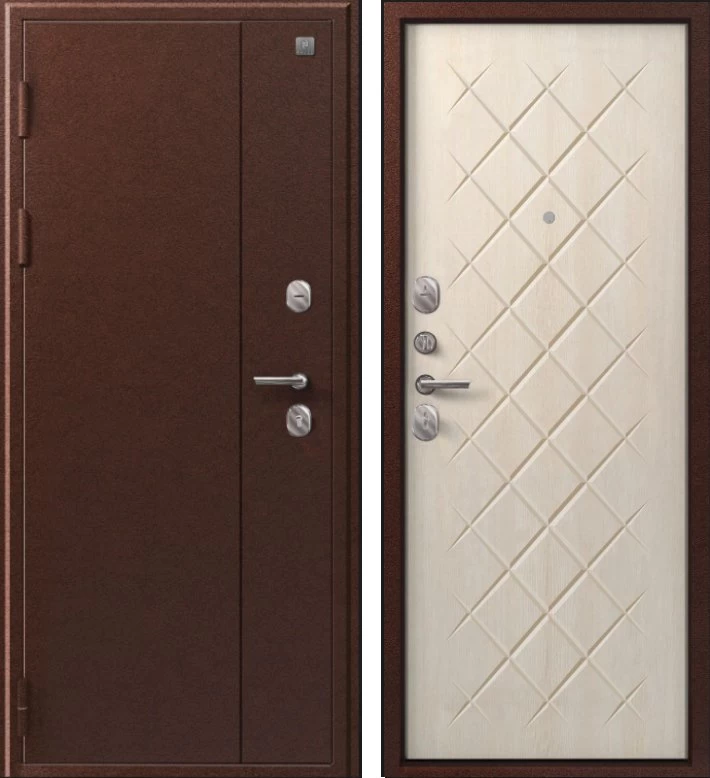 Надежная входная Дверь V-02 медь антик - седой дуб премиум класса по цене 36 537 руб. Большая толщина стали защитит от проникновения в ваш дом, квартиру или коттедж. Используется очень качественная фурнитура: замки, цилиндры, ручки, защелки. Покрытие и отделка двери изготовлено под внимательным контролем производителя. Дверь имеет долгий срок службы и гарантию.